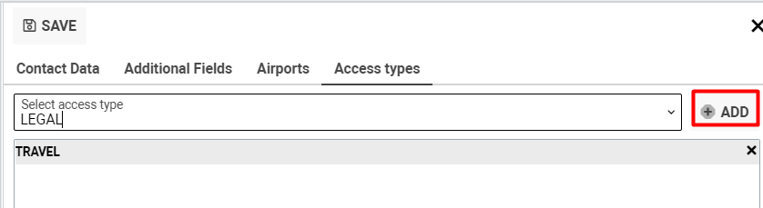 Pay attention that you have an opportunity to add one or more access types, clicking the Add button