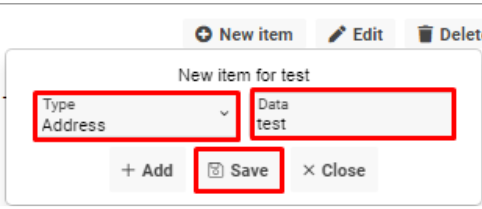 Fill in the Type and Data fields and click the Save button