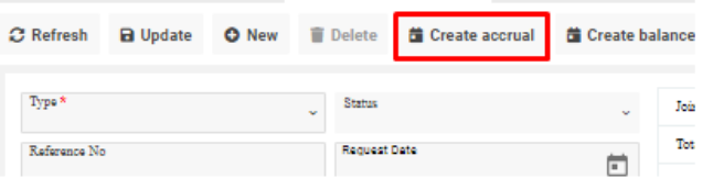 Click the Create accrual button