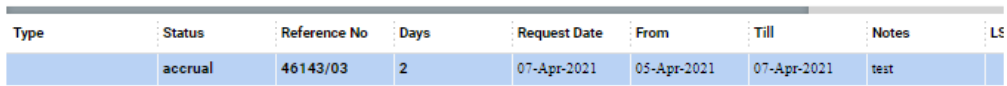The new entry with the accrual status will be added to the list