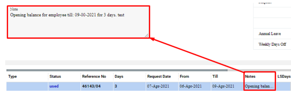 The new entry with the used status will be added to the list. Pay attention that the details will be displayed in the Note field