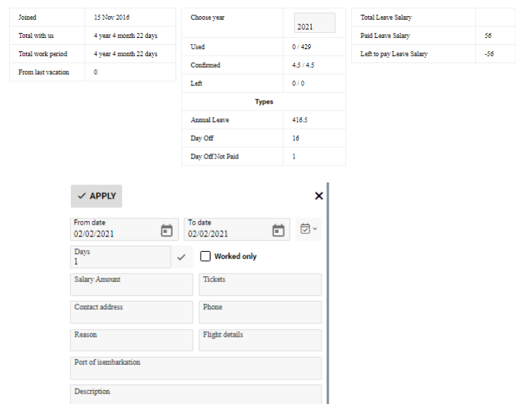 Pay attention that the Resigned Date field will be blocked in all working statuses, except the Resigned one