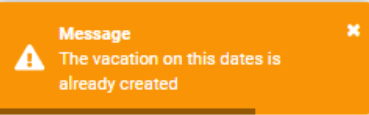 Pay attention that the error message will be shown in case a new entry is created during the period of an existing vacation