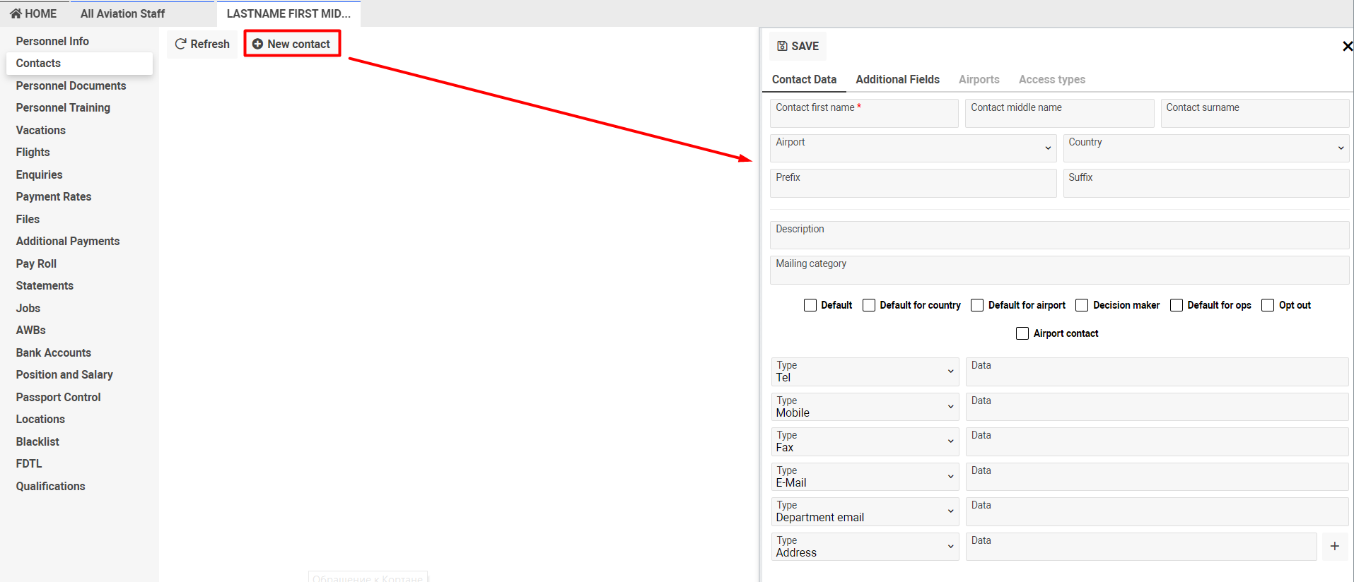 Home→ Crew→ Crew Management→ All Aviation Staff→ open any