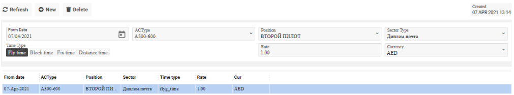 Time type – the type of the time (it can be Fly time, Block time, Fix time, Distance time)