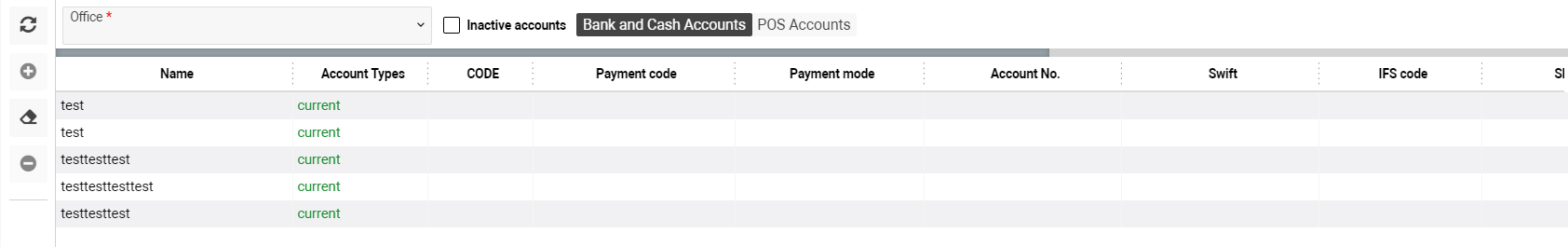 The list with all bank accounts is shown on this tab