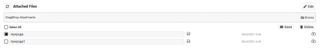 On this tab you have an opportunity to add attachments. You can edit, download/open, delete and send them.