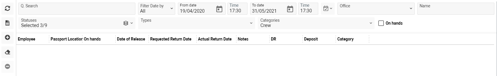 On this tab you have an opportunity to create/edit/delete training for a person. Follow this link to see more information about the interface Crew Training