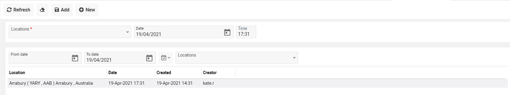 The From date, To date and Location fields