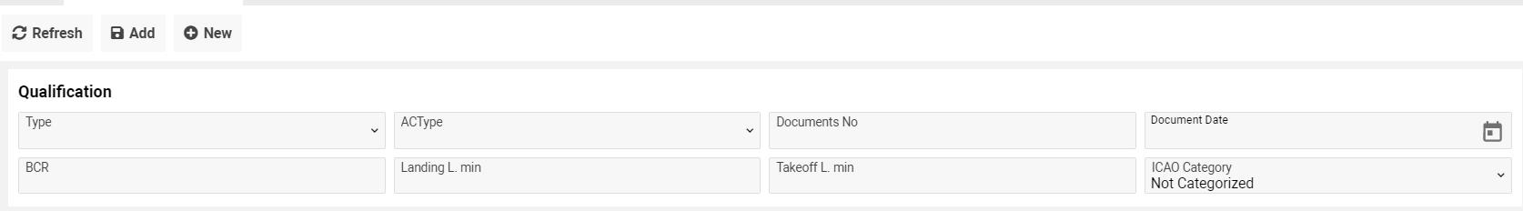The Documents No, BCR, Landing L. min, Takeoff L. min input fields