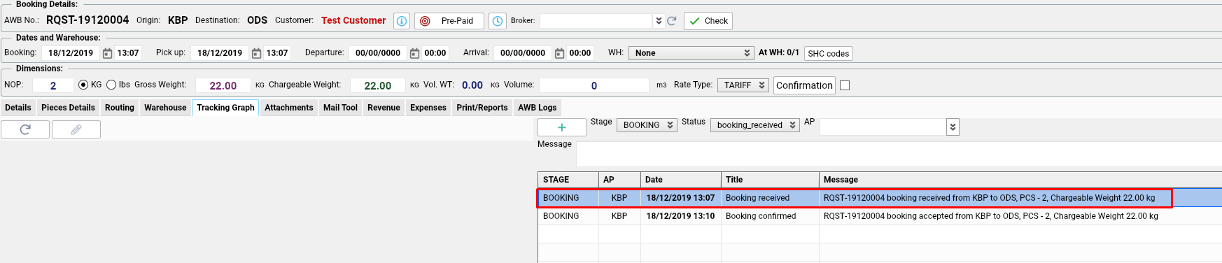 2) When the AWB is "Confirmed" the message "Booking Confirmed" will appear