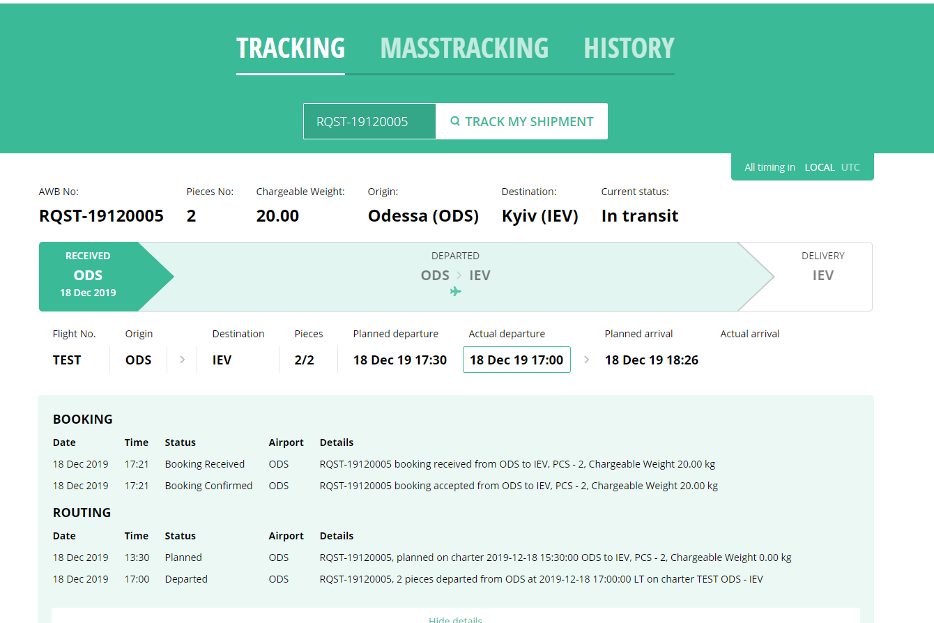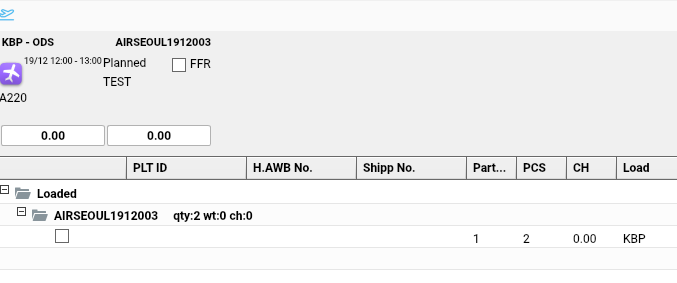 After AWB is planned, it will appear on the Cargo tab in-flight/truck and status will change accordingly. | |