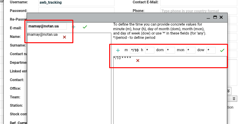Enter email for notification and period (in the example the period is 10 minutes, which means the information will be updated every 10 mins)