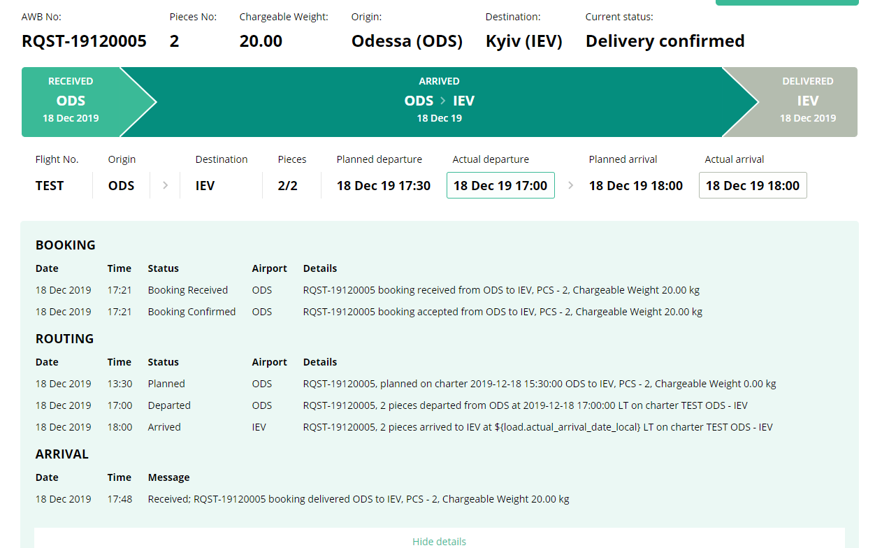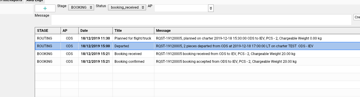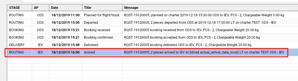 To receive DEPARTURE and ARRIVAL Messages, please, set up a Notification user with script awb_tracking