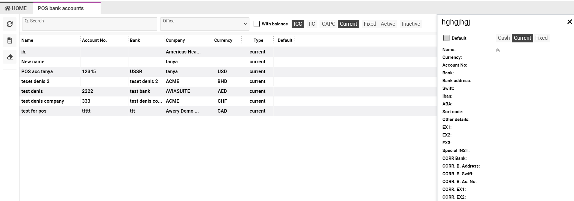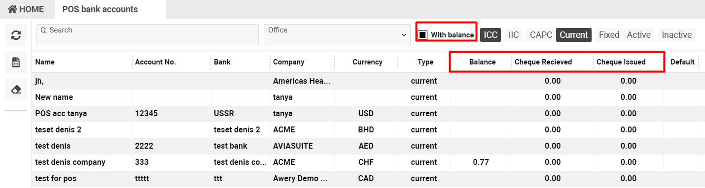 Also, using the ‘With balance’ check-box, you will see the list of accounts that have balanced.
