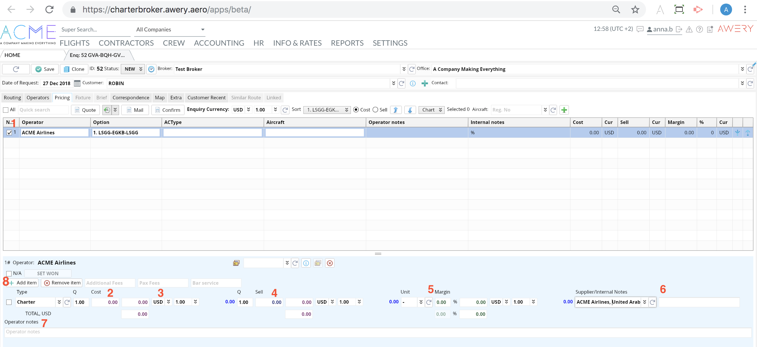 Home→ Flights→ Enquiry→ Office Enquiries→ Open a required Enquiry→ Pricing
