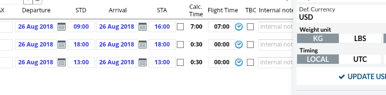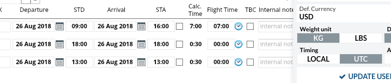 In enquiries the local time displayed in BLUE and UTC in BLACK