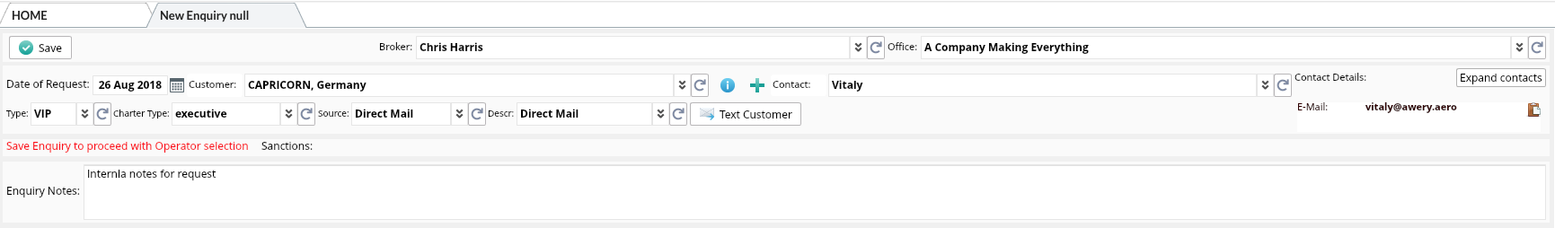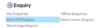 - Create new Enquiry form menu or from Enquiries list