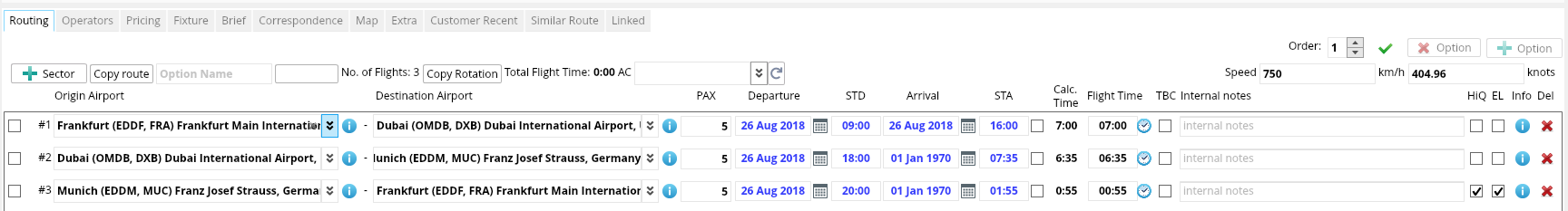 - Enter the Initial Routing Details (Multiple routing options are possible once the Enquiry is Saved at 1st time):