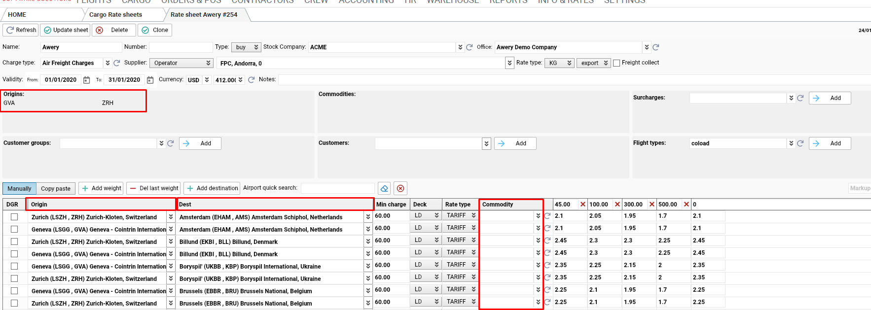 How to use Cargo Rate Sheets