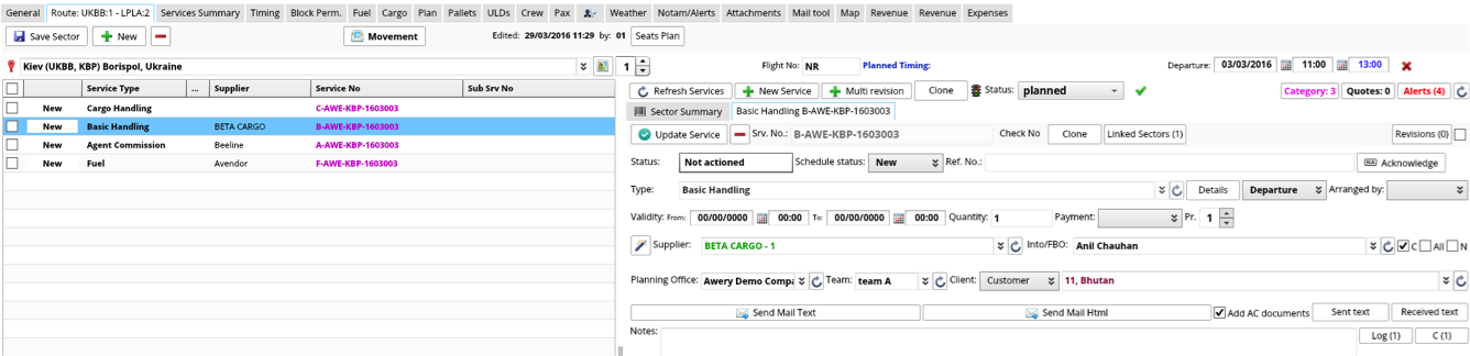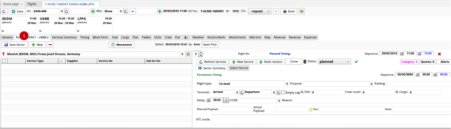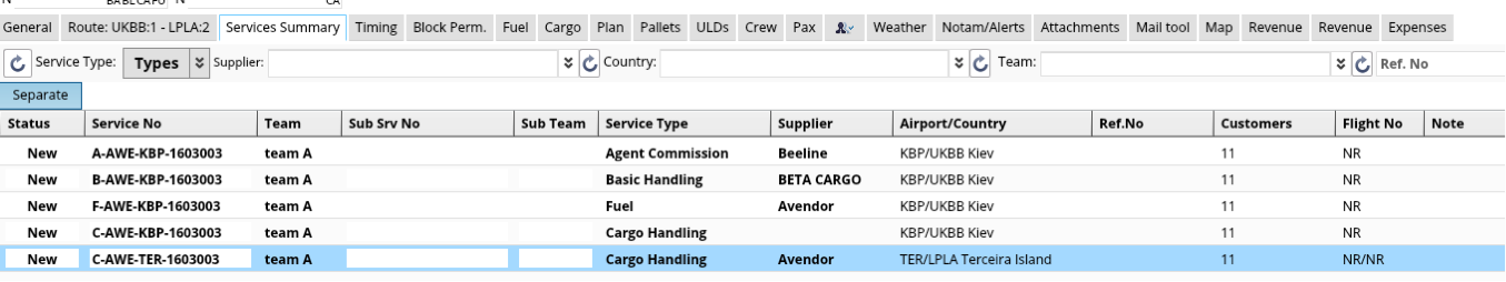 If the same service is required for several waypoints, you can clone it. Choose waypoint from the list and press clone