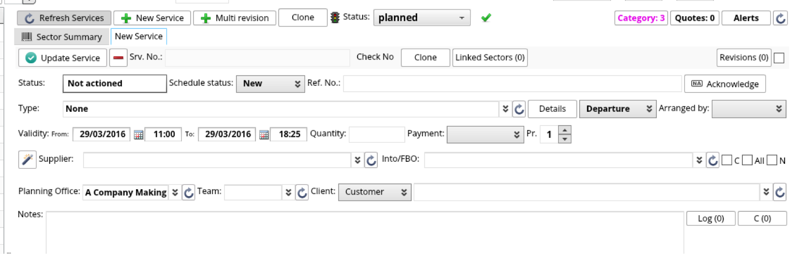 Service status. Will be changed automatically due to changes of time, Reference number, Revisions.