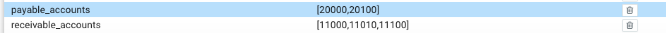 receivable_accounts - Comma separated list of Receivable Accounts from Chart of Accounts