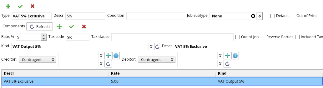 | VAT type | % | Tax Code | Description |