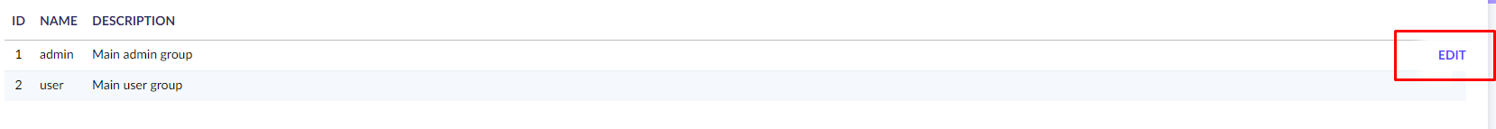 Of the group's page, you can create new or edit the group. Edit an existing group by clicking button Edit when pointing on the group name.