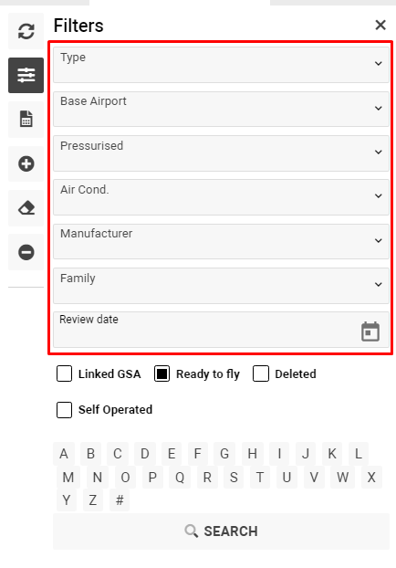 - Ready to fly - shows the list of aircraft which ready for work